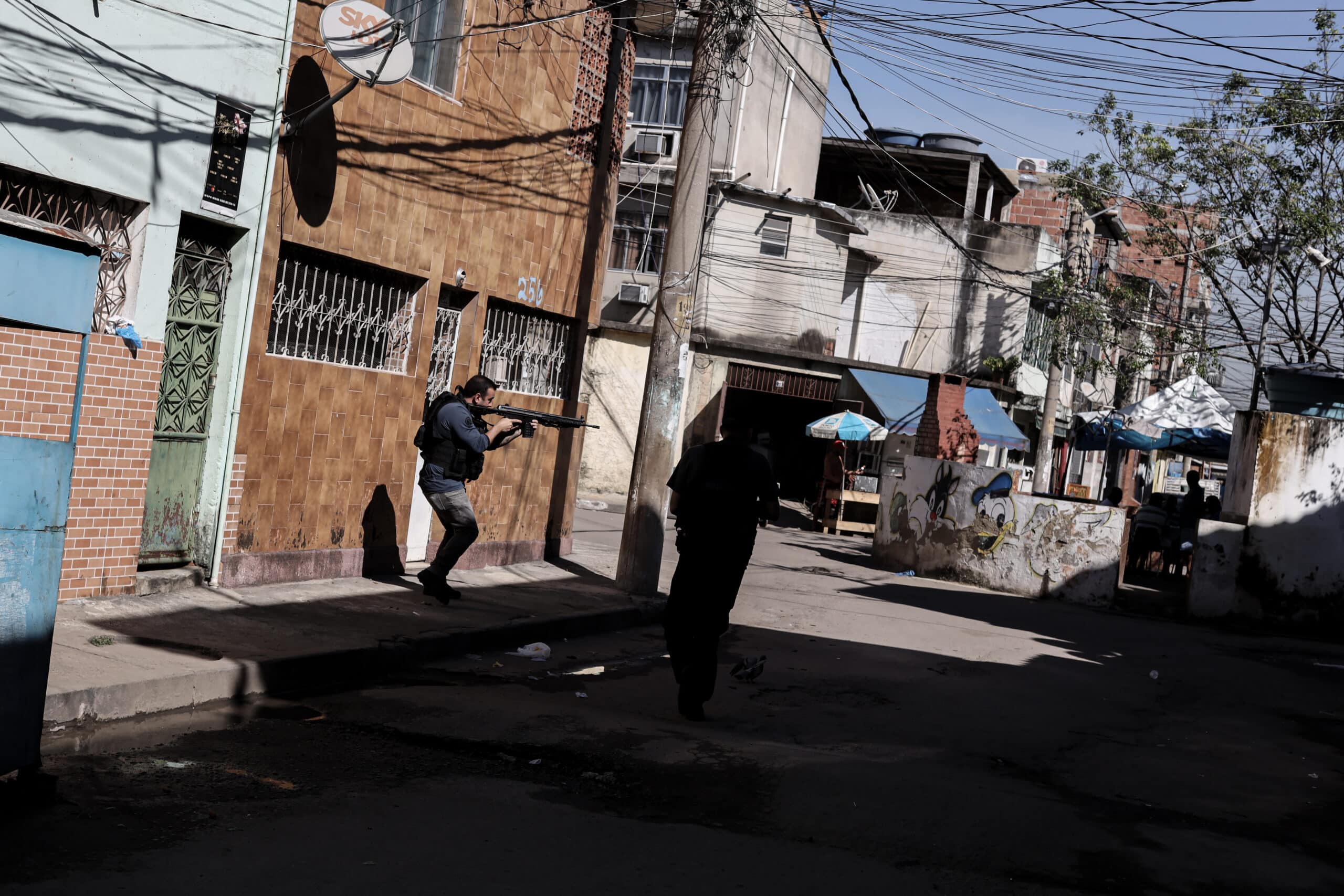 Crédit : Jonathan Alpeyrie / 1er Juin, 2019 – Une fusillade a éclaté entre les forces de police et des trafiquants de drogue. Une petite unité de la police civile mène une opération dans une favela très dangereuse du nord de Rio afin d’arrêter un trafiquant de drogue bien connu. Des affrontements ont rapidement éclaté entre diverses autres unités de police et des membres de gangs armés. (Photo par Jonathan Alpeyrie/Polaris Images)